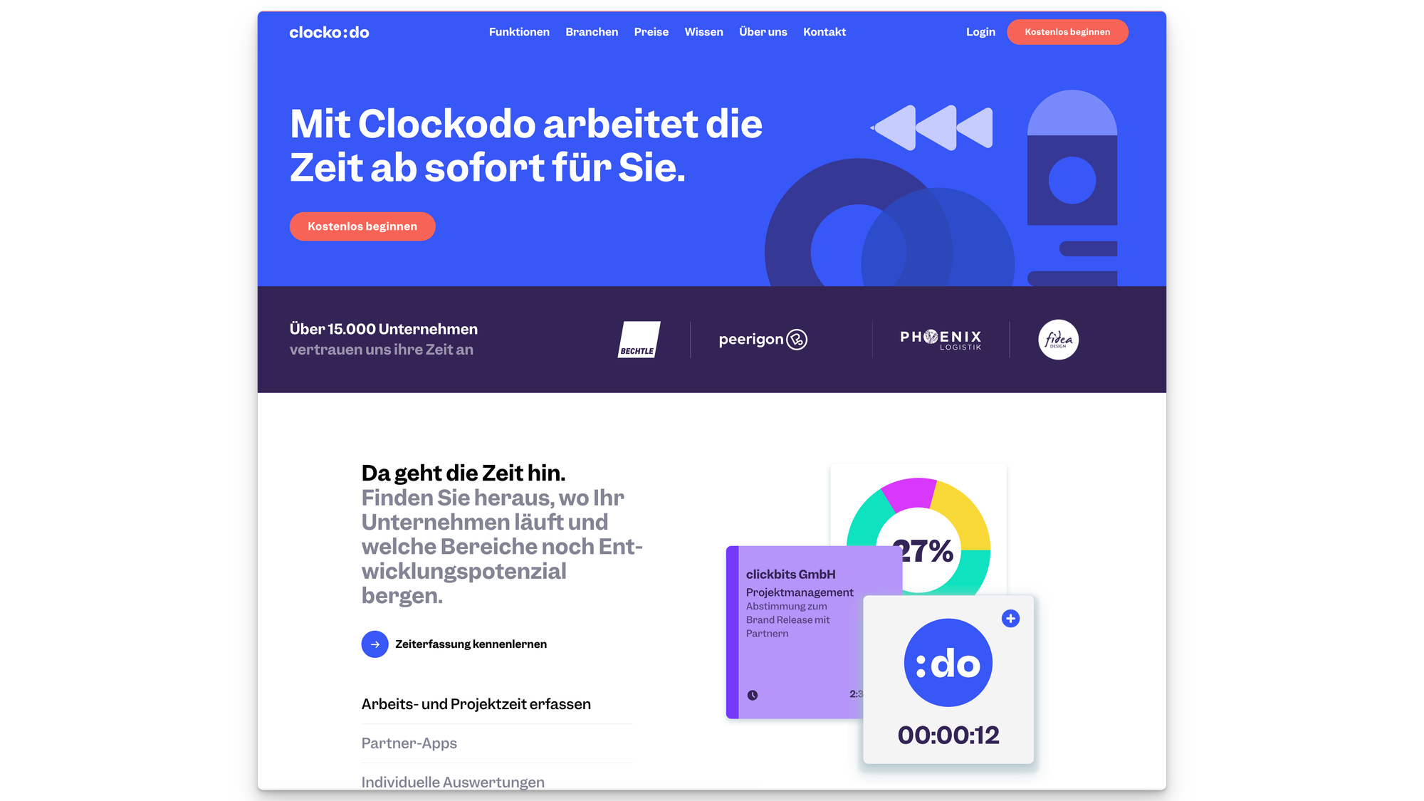 Das Geschäftsmodell ist klassisches SaaS mit breiter Zielgruppe: Vom Freelancer, der Clockodo kostenlos nutzt, über kleine Firmen mit fünf bis zehn Mitarbeitern, bis hin zu Großkunden wie Bechtle mit mehreren hundert Nutzern. Über 10.000 zahlende Kunden generieren mehr als 500.000 Euro MRR.