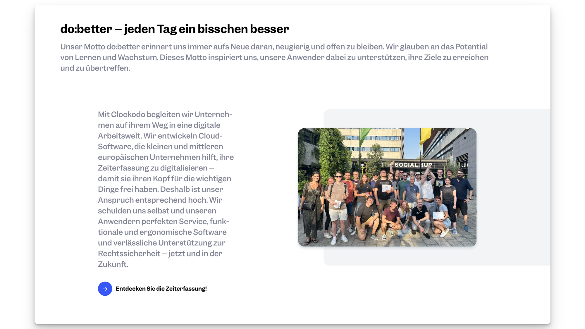 Die dritte Herausforderung: Konkurrenz. Toggle gab es schon, als Clockodo startete. Heute ist der Markt voller Zeiterfassungs-Tools. Clockodo differenziert sich durch Detailtiefe und den Fokus auf Dienstleister – und durch 13 Jahre kontinuierliche Weiterentwicklung.