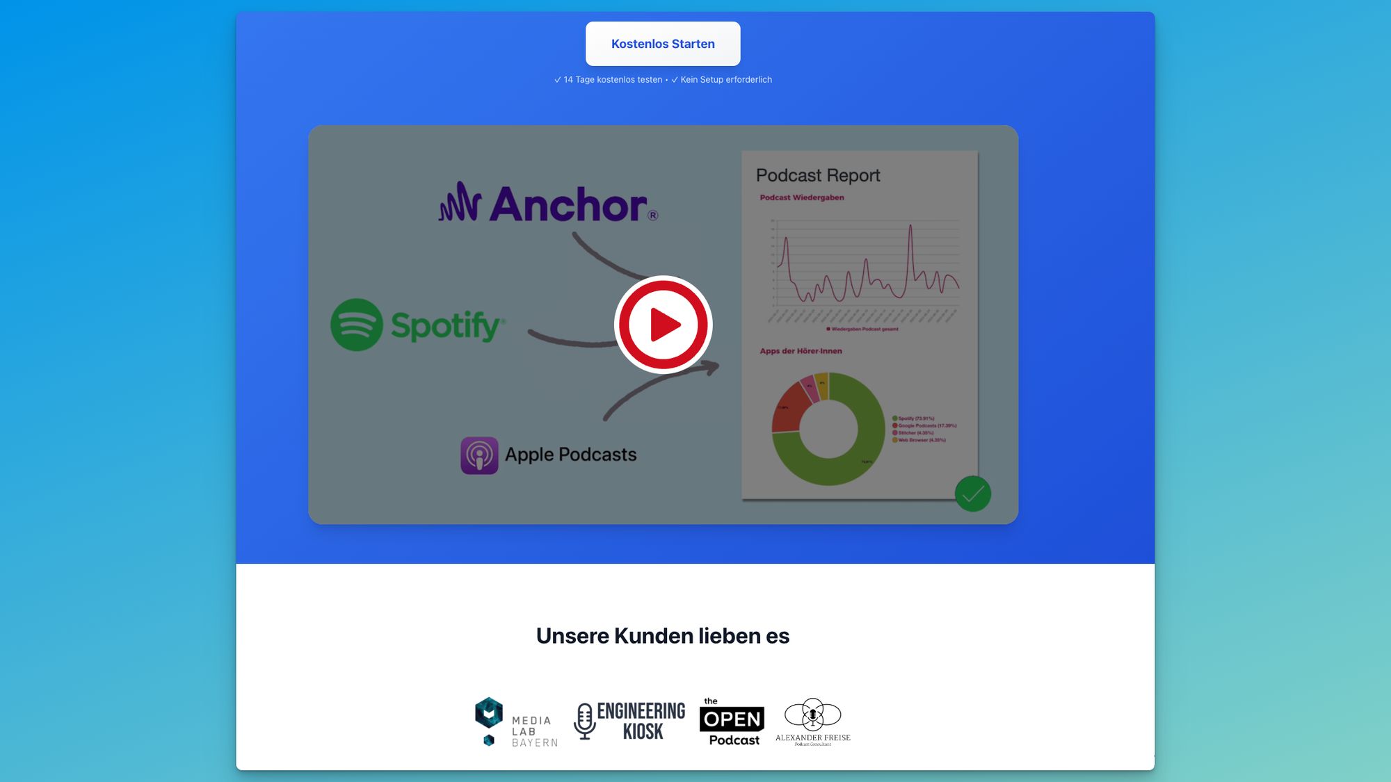Wolfgang Gassler und Matthias Endler starteten Open Podcast mit einer 50.000€ Förderung des MediaTech Lab Bayern. Was als Lösung für ihr eigenes Problem begann - bessere Podcast-Statistiken für ihren Engineering Kiosk Podcast - entwickelte sich zu einer professionellen Analytics-Plattform für B2B-Kunden.