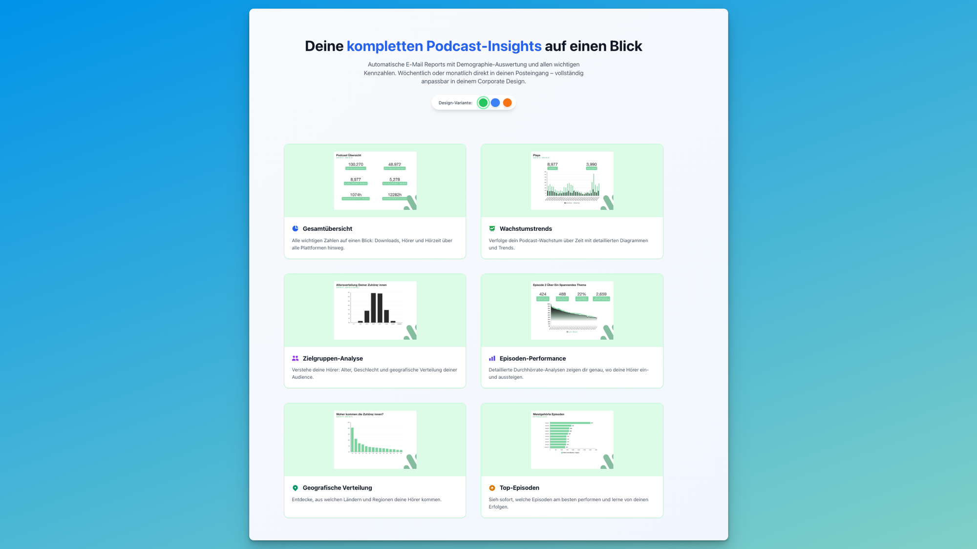 Die beiden Entwickler erkannten schnell ein grundlegendes Problem: Podcast-Statistiken sind über verschiedene Plattformen verstreut und schwer zu vergleichen. "Du musst dich bei Spotify einloggen, bei Apple einloggen - du hast fünf verschiedene Datenquellen, alle nennen die Werte anders", beschreibt Wolfi die Situation. Statt eines komplexen Dashboards, wie ursprünglich geplant, zeigte sich im Kundenfeedback der Bedarf nach automatisierten PDF-Reports.