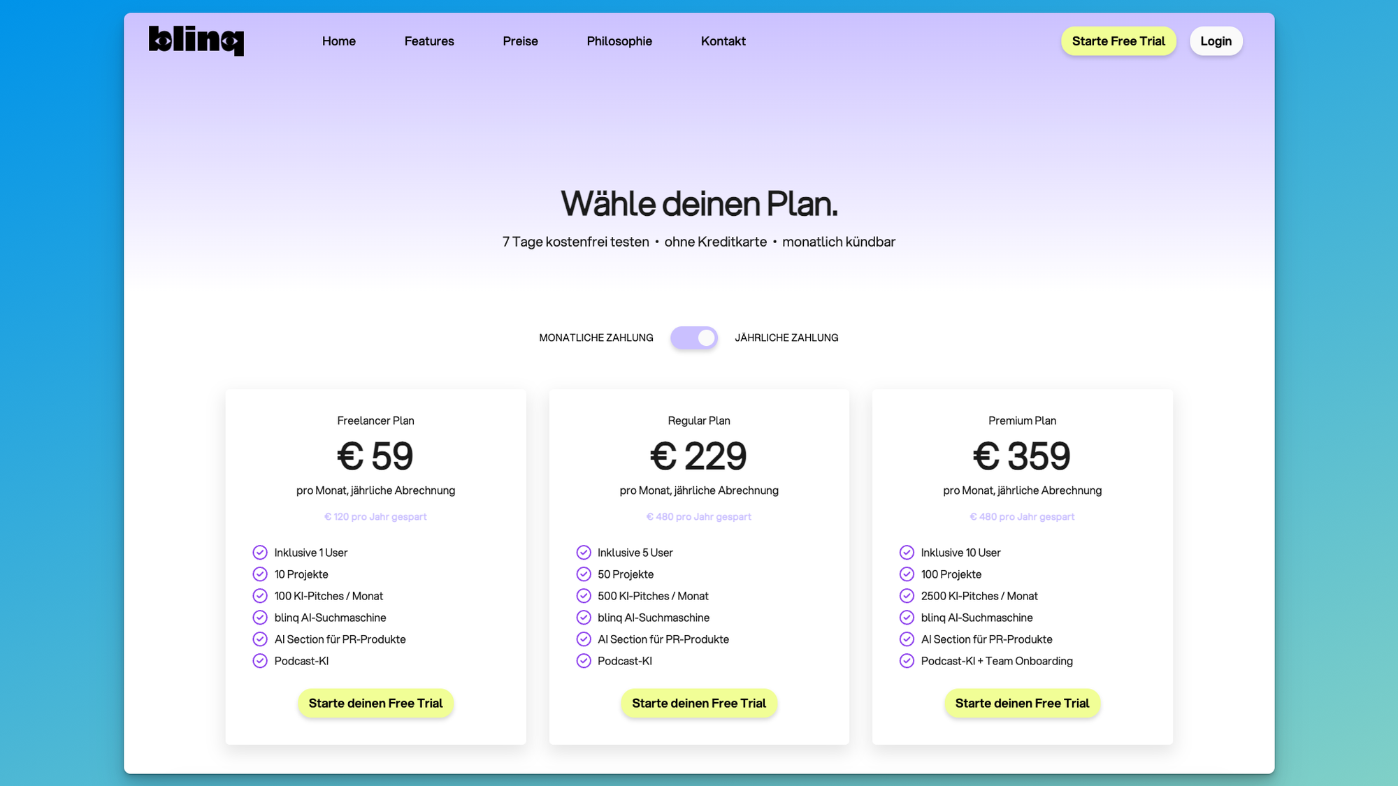 Aktuell nutzen die meisten Kunden den Freelancer-Plan, während der Premium-Plan den größten Umsatz generiert. 70% der Kunden zahlen jährlich und sparen dadurch einen Monat. Eine 7-tägige kostenlose Testphase ermöglicht es, das Tool ohne Zahlungsdaten kennenzulernen.