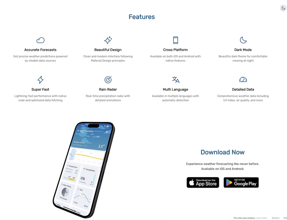 Das Ergebnis sind handgemachte Animationen, die Wetterbedingungen sichtbar machen. Regnet es stärker, sieht man das auch. Zieht Wind auf, bewegen sich die Wolken schneller. Nichts davon ist generiert, alles selbst gebaut. Zwischen 5.000 und 10.000 Downloads hat YAWA inzwischen eingesammelt. Eine kleine, treue Nutzerbasis, die genau diesen Ansatz schätzt.